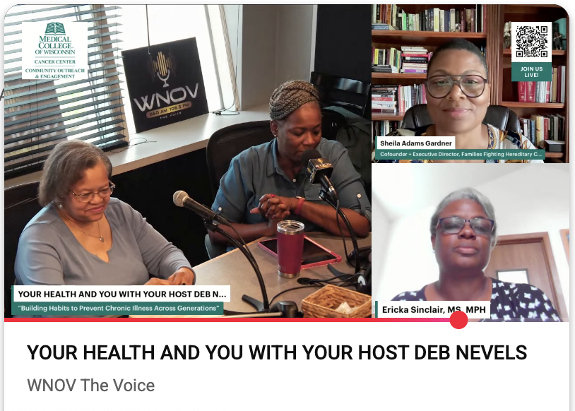 Back to All Events WNOV The Voice Radio "Your Health and You" Friday, August 1, 2025 7:30 AM 9:00 AM Google Calendar ICS FFHC Cofounder + Executive Director, Sheila Adams Gardner discussed the importance of empowering oneself to proactively fight cancer on WNOV The Voice Radio program, “Your Health and You With Your Host Deb Nevels.”